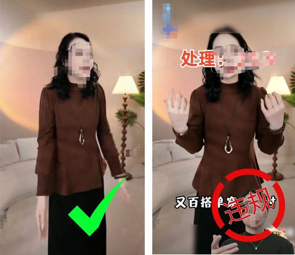 “暮**饰”等达东说念主盗用他东说念主的直播片断,并通过裁切原创主播肖像、画面回转等技能进行舞弊,以真东说念主小窗的表情售卖商品。现在平台已中断该达东说念主盗播直播间,并关闭其商品共享功能1天。