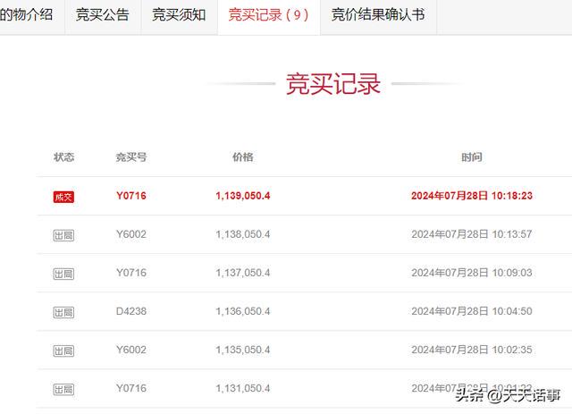 这次拍卖,起拍价为112.805万元,拍卖眩惑了4个东说念主报名竞拍,不外竞拍历程谈不上强烈,只进行9次涨价就厌世拍卖了,以113.905万元成交,成交仅仅比起拍价莳植1.1万元汉典。
