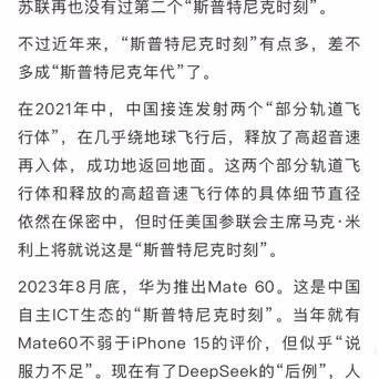 “斯普特尼克时刻”不仅代表脑怒国度在某一科技上跨越,况且是豪阔引起定体问的跨越。必须珍重到的是:在原版“斯普特尼克时刻”后,苏联再也莫得过第二个“斯普特尼克时刻”。