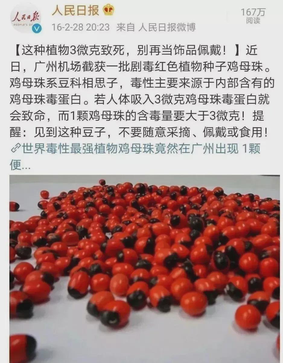 鸡母珠被民间列为“天下上毒性最强的植物的前五名”,一颗小小的鸡母珠拿下一条东说念主命稳操胜算。